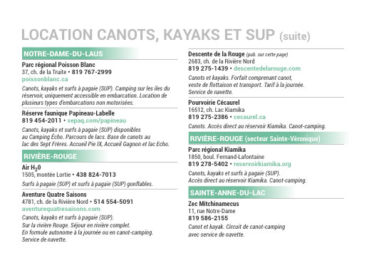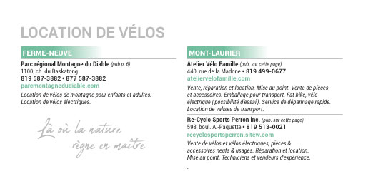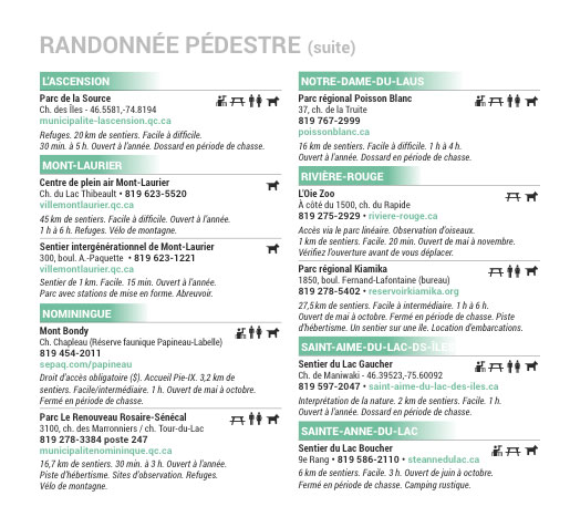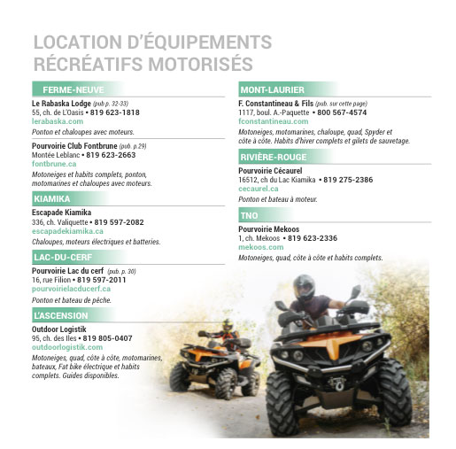 Que vous soyez n’importe où dans les Hautes-Laurentides, vous aurez accès à une vaste gamme d’activités pour vous divertir. Nos innombrables lacs, rivières et réservoirs vont satisfaire autant les amateurs de sports nautiques, que nos magnifiques montagnes et parc régionaux combleront les randonneurs et les adeptes de quad. Le parc linéaire, quant à lui, vous promet des randonnées à vélo vivifiantes au cœur des plus beaux paysages laurentiens.